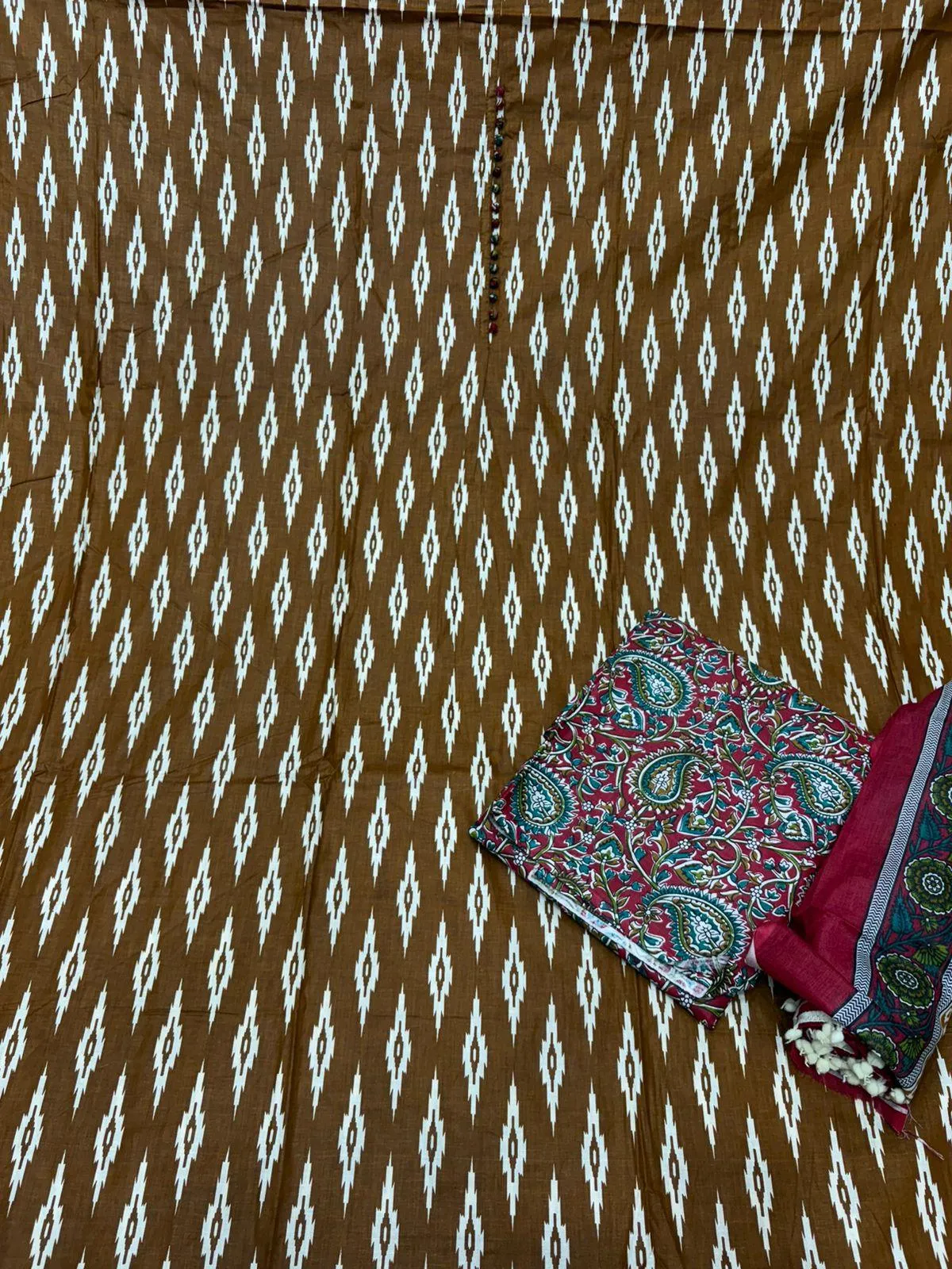 Traditional Ikat Print Suit with Cotton Dupatta | kalamkari 1
